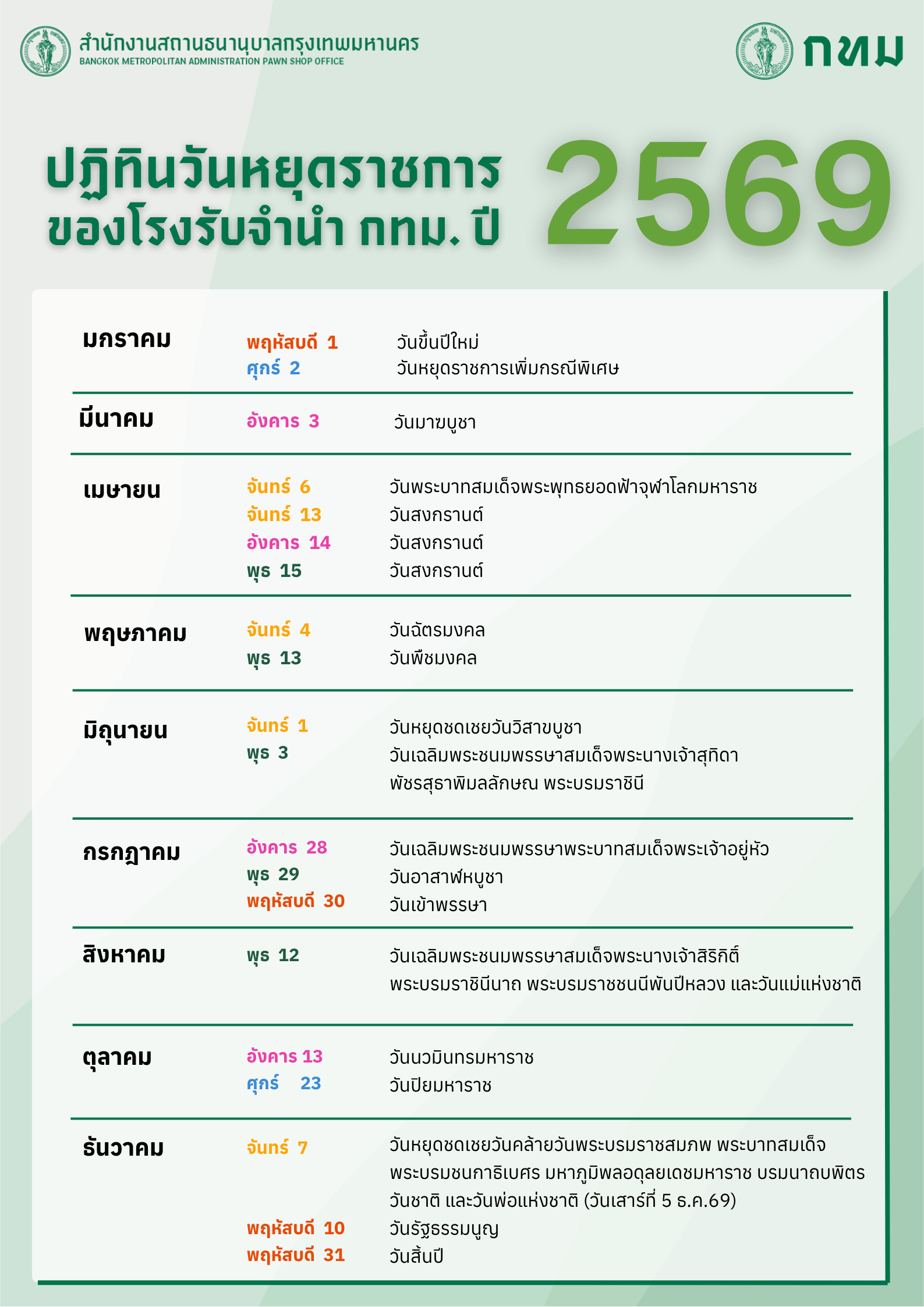 สถานที่: สำนักงานสถานธนานุบาลกรุงเทพมหานครชั้น 3 อาคารโกลด์มาร์เก็ต เริ่มเวลา: 09.00 น.