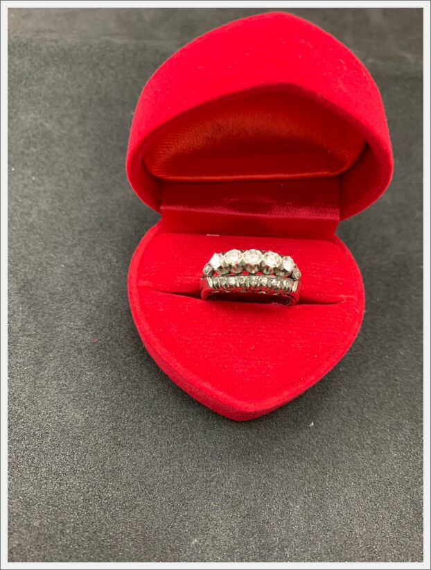 แหวนเงิน 1 วงเกาะเพชรลูก 25 เม็ด บุบชำรุด น้ำหนัก 4.8 กรัม |