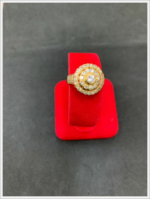 | แหวนทองเจือ 1 วงเกาะเพชรลูก 48 เม็ด บุบชำรุด น้ำหนัก 5.5 กรัม |