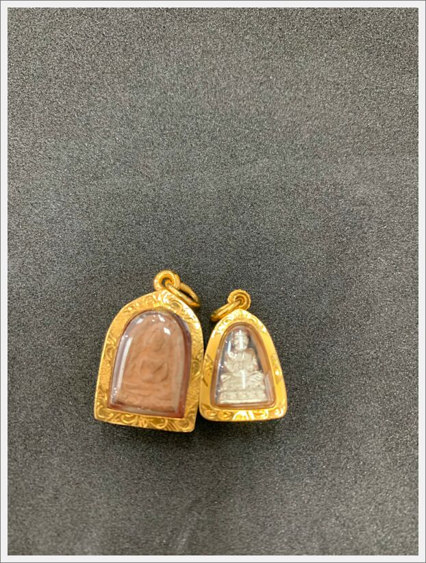 พระเลี่ยมทองเจือ 2 องค์ บุบชำรุด น้ำหนัก 8.8 กรัม