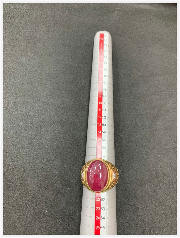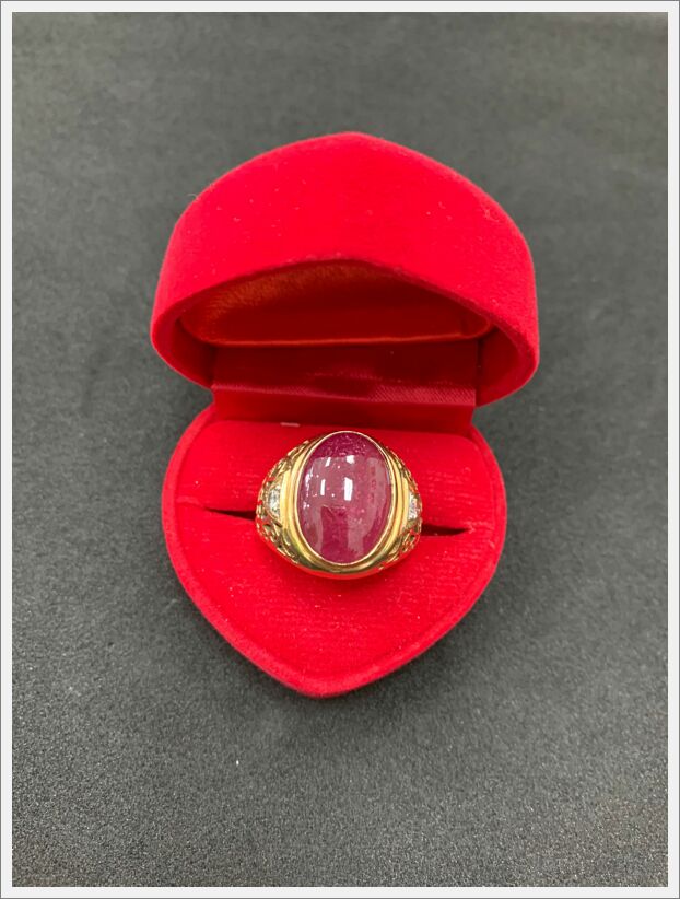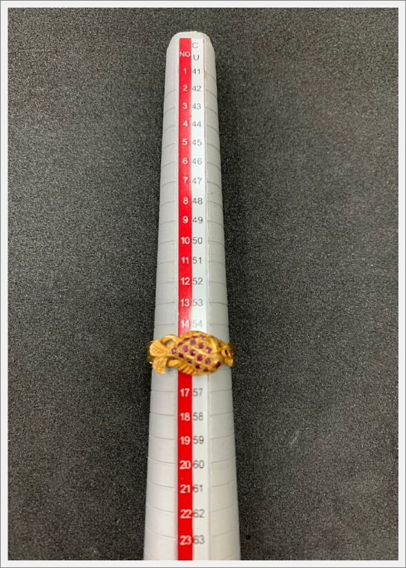แหวนทองเจือประดับพลอยแดง 1 วง บุบชำรุด น้ำหนัก 5.7 กรัม